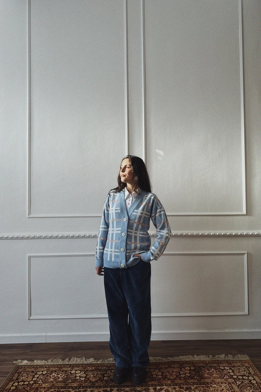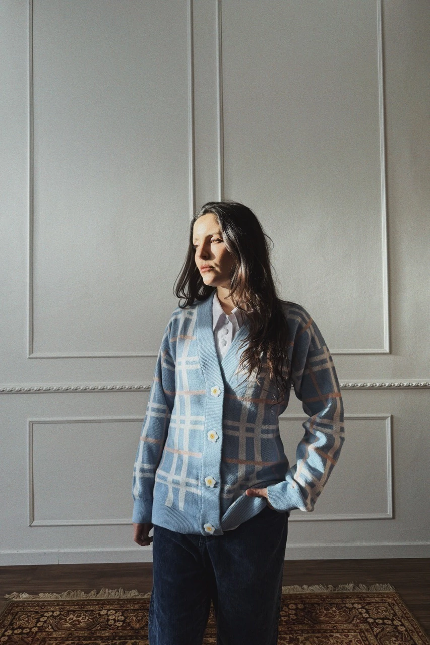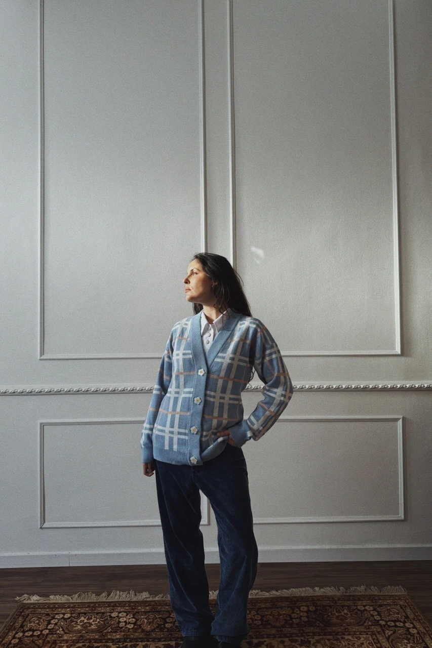 Es un cardigan de un tejido compuesto por rayón que es una fibra natural proveniente del bambú y poliamida. Esta composición hace que tenga una mano muy suave y no pique al contacto con la piel. Esta es nuestra alternativa de invierno para quienes no quieren consumir lana de origen animal. Si buscas una prenda con lana natural tenemos otros modelos en la web que te pueden servir. Los botones son de acrílico y están hechos a mano. Esta diseñado, tejido y confeccionado en Mar del Plata en la fábrica Tejidos Emilia. Viene en 5 talles.