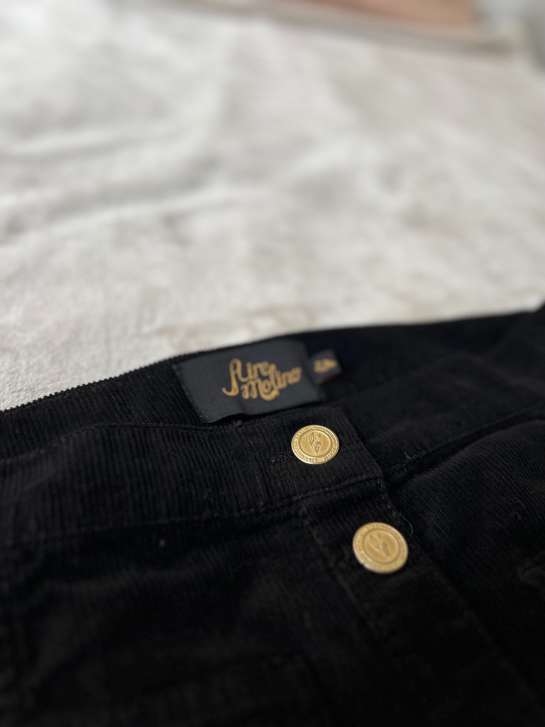 es una falda confeccionada en corderoy 100% algodón. Esto significa que es una tela rígida, no elastizada que no cede, es gruesa y tiene cuerpo lo que le da esa calidad y estilo de las prendas vintage que es lo que buscamos con toda nuestra línea corderoy y denim ❤️