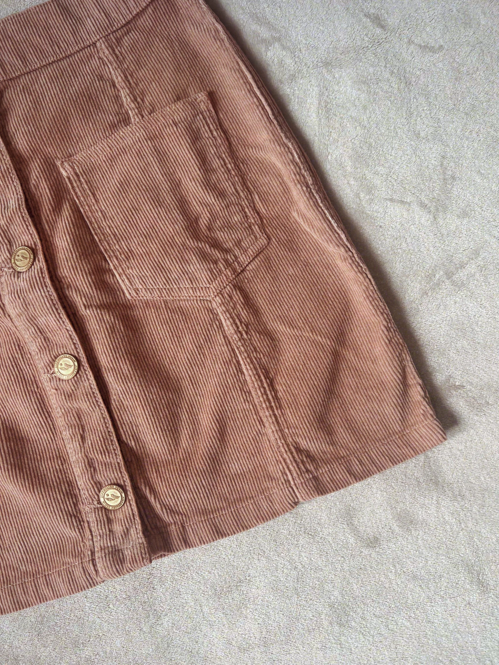 es una falda confeccionada en corderoy 100% algodón. Esto significa que es una tela rígida, no elastizada que no cede, es gruesa y tiene cuerpo lo que le da esa calidad y estilo de las prendas vintage que es lo que buscamos con toda nuestra línea corderoy y denim ❤️
