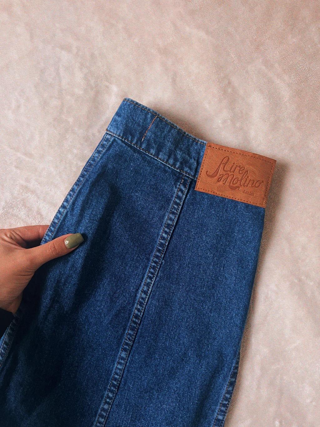 es una falda confeccionada en corderoy 100% algodón. Esto significa que es una tela rígida, no elastizada que no cede, es gruesa y tiene cuerpo lo que le da esa calidad y estilo de las prendas vintage que es lo que buscamos con toda nuestra línea corderoy y denim ❤️
