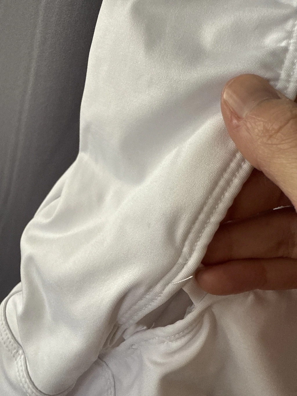Este modelo, como todos los confeccionados en lycra, es suceptible al efecto peeling: lo que significa que si se raspa/frota con una superfici rugosa, se puede enganchar y sufrir un daño la tela.