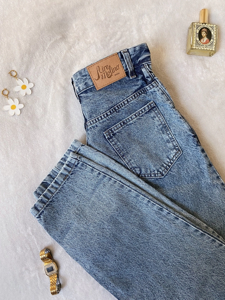 Este pantalón está con confeccionado en denim 100% algodón de 12 onzas. Esto significa que es un prenda rígida, pero super respirable. Las prendas tienen un proceso de lavadero que las desgasta visualmente para dejar ver la fibra de debajo y darle esa estética desgastada que se ve en las terminaciones. Los bolsillos de la prenda son todos reales como siempre, y los botones que utilizamos son dorados, marca apollo, diseñados exclusivamente para aire molino. Los cierres son ykk.