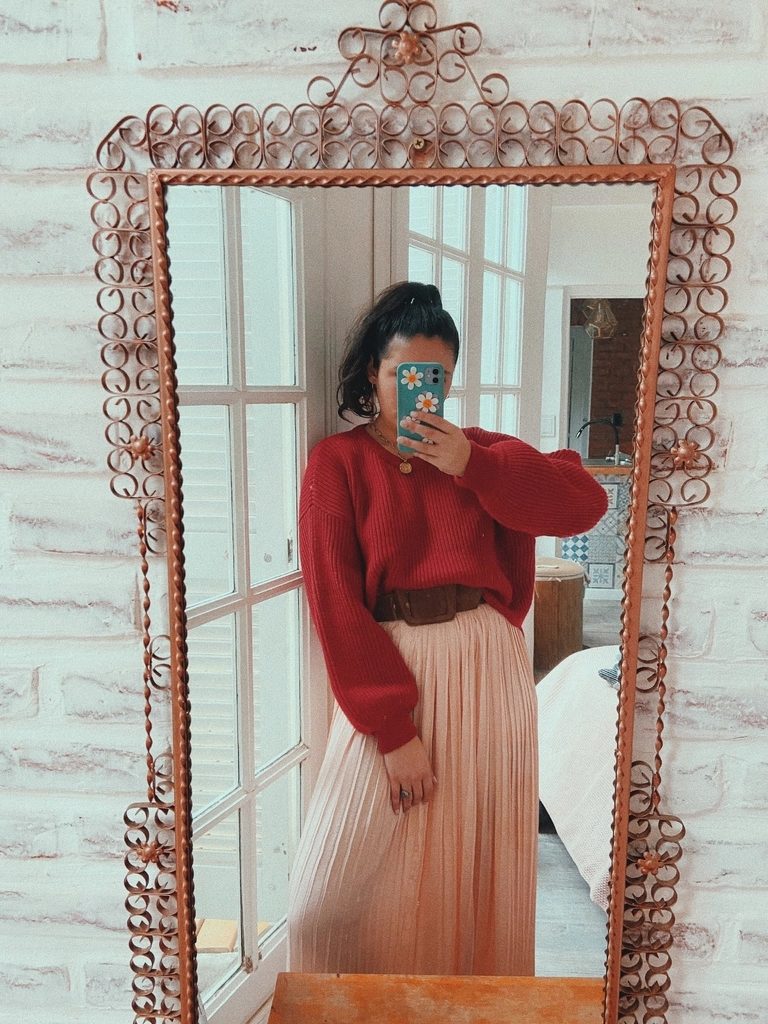 Confeccionada con 50% de lana natural y 50% acrílico. Es una prenda super suave y respirable , esta es una de las características hermosas del material (además de la durabilidad). El corte es oversize, tiene los hombros caidos y mangas abullonadas. Los puños son dobles para que sean mas gorditos, y el corte es mas largo atrás que adelante. El largo es perfecto para usar con tiro alto. La textura es suave y no pica, las prendas están tratadas en lavadero luego de ser tejidas.