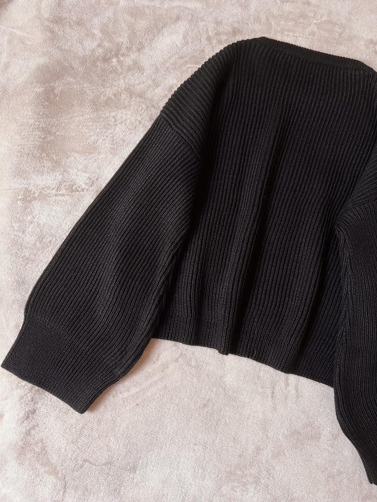 Confeccionada con 50% de lana natural y 50% lana acrílica. Es una prenda super suave y respirable , esta es una de las características hermosas del material (además de la durabilidad). Está tejida en punto inglés. El corte es oversize, tiene los hombros caidos y mangas largas y anchas. Los puños son dobles para que sean mas gorditos, y el corte es mas largo atrás que adelante. Este modelo es más largo que los modelos crop de la temporada anterior. La textura es suave y no pica, las prendas están tratadas en lavadero luego de ser tejidas.