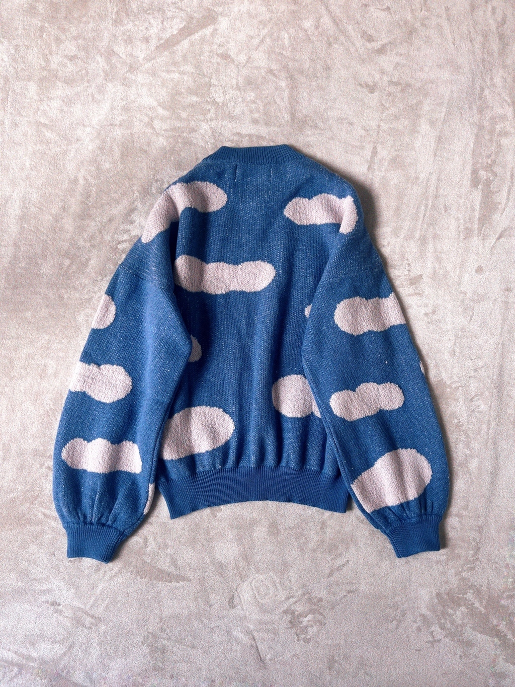 Es un sweater confeccionado en lana mohair. La textura del tejido de nubes hace que estas resalten y se vean mas peluditas. Es super liviano, suave y calentito ya que está tejido con lana natural. Y viene en 5 talles.