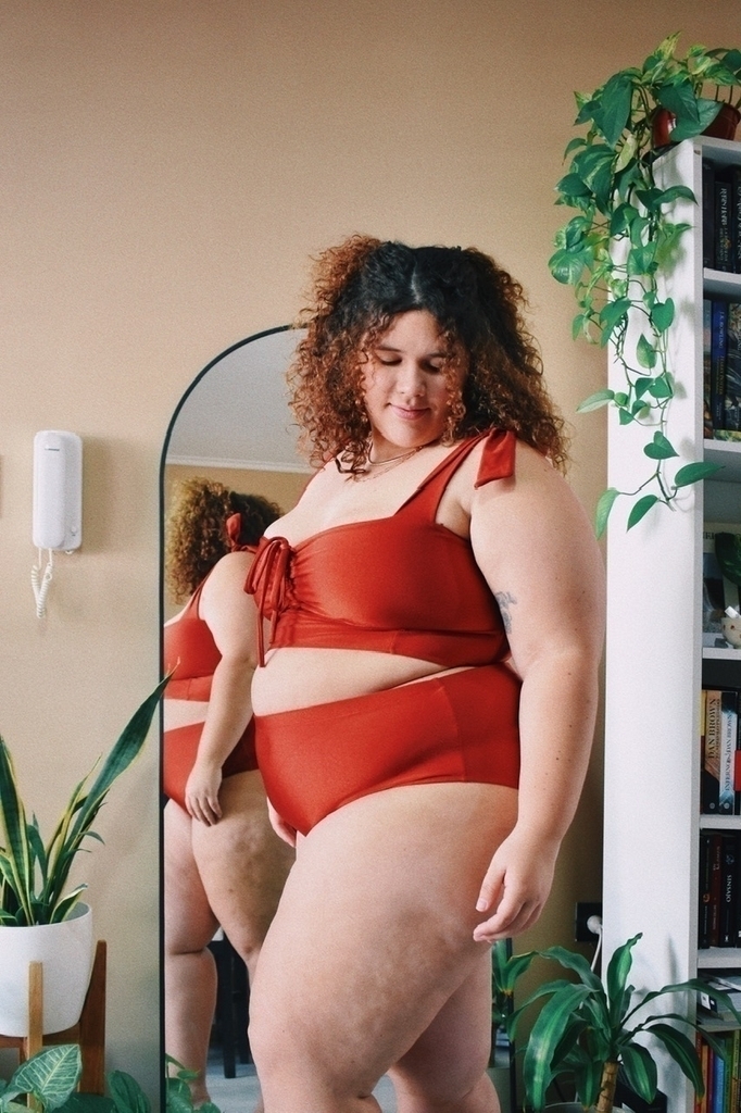 Composición: 85% poliamida 15% elastano. La tela es de origen brasilero y  está confeccionada con fibras LYCRA® XTRALIFE™ con tecnología SOLARMAX® que bloquea los rayos UV en un 97,5%.