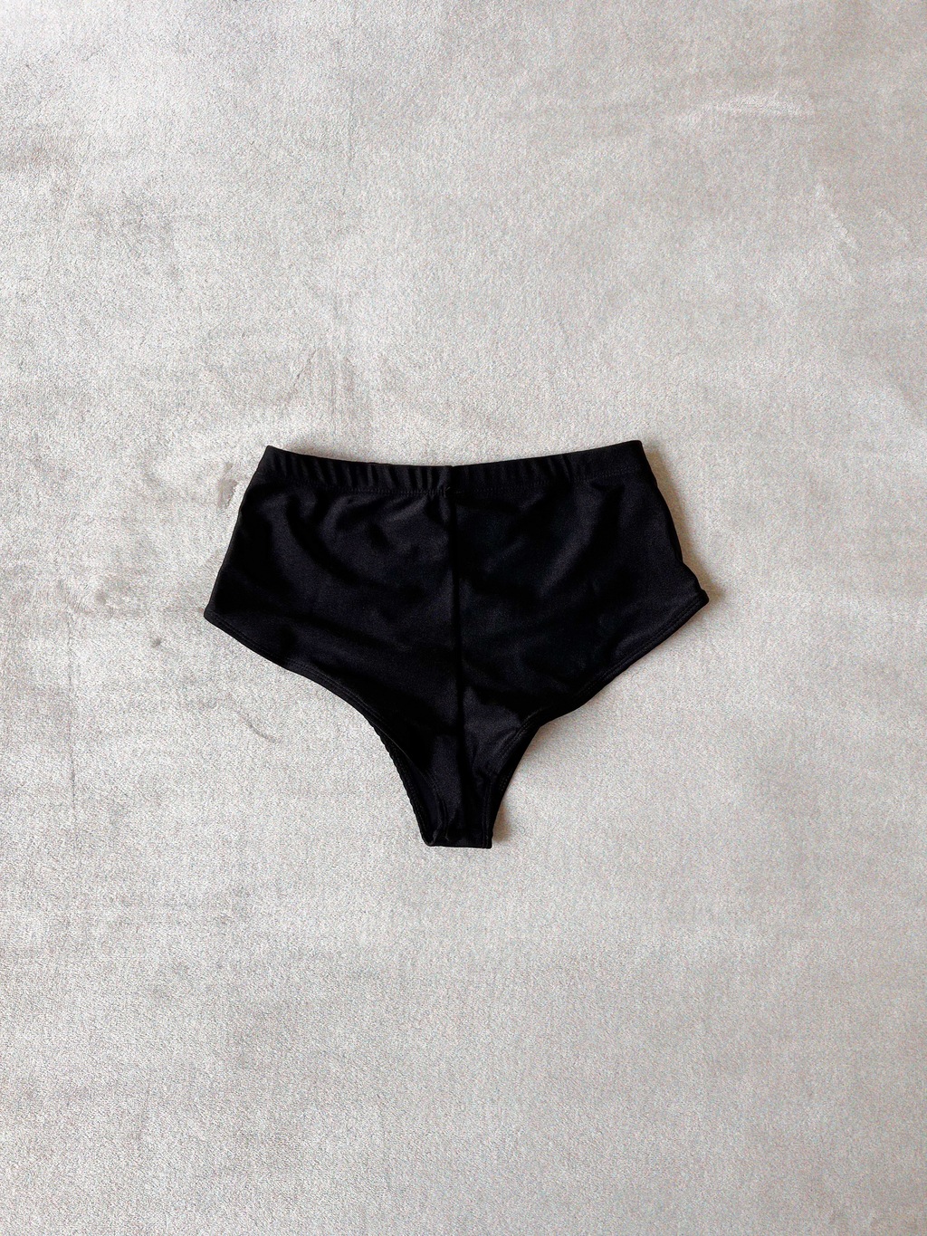 La prenda fué confeccionada en Mar del Plata. El corte es tipo culotte tiro alto, el molde está diseñado para seguir la forma del cuerpo en el calce trasero. El elástico de la cintura es ancho, de 2,5 cms.