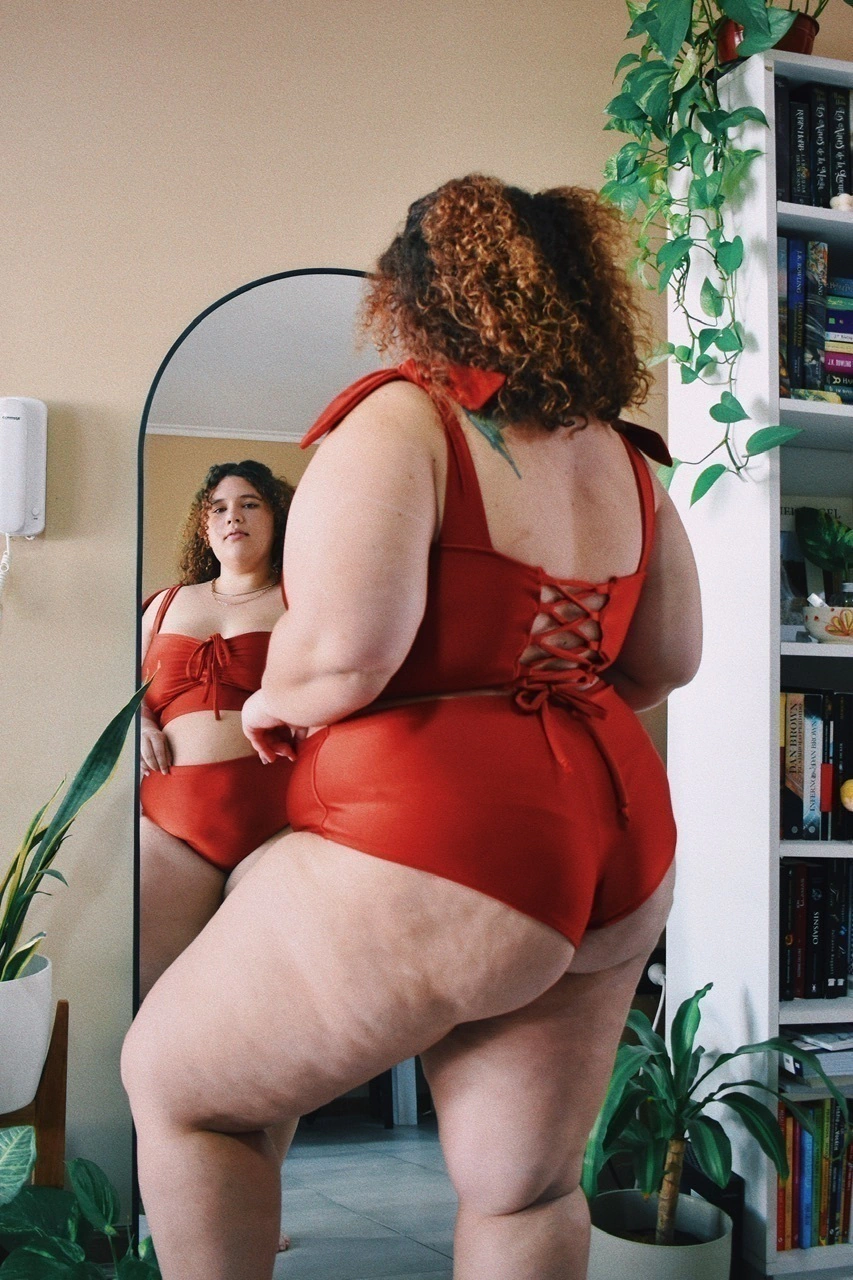 La prenda fué confeccionada en Mar del Plata. El corte es tipo culotte tiro alto, el molde está diseñado para seguir la forma del cuerpo en el calce trasero. El elástico de la cintura es ancho, de 2,5 cms.