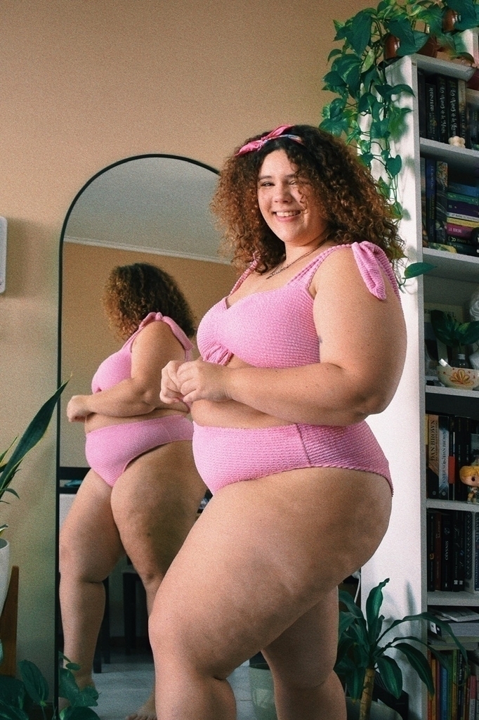 La tela es de origen brasilero y está confeccionada con fibras LYCRA® XTRALIFE™ con tecnología SOLARMAX® que bloquea los rayos UV en un 97,5%.