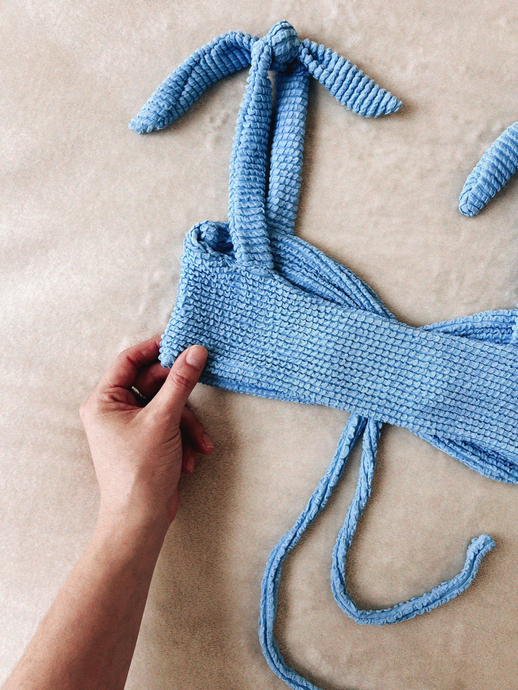 La prenda fué confeccionada en Mar del Plata. Es un top con breteles anchos (el ancho del brete también progresiona en los talles mas grandes), está forrado con al misma tela del frente, lo que hace que tenga mucho soporte. Es un modelo que sostiene muy bien tanto en los talles chicos como en los grandes. Tiene un cordón de la misma tela en el centro que frunce el escote según prefieras usarlo.
