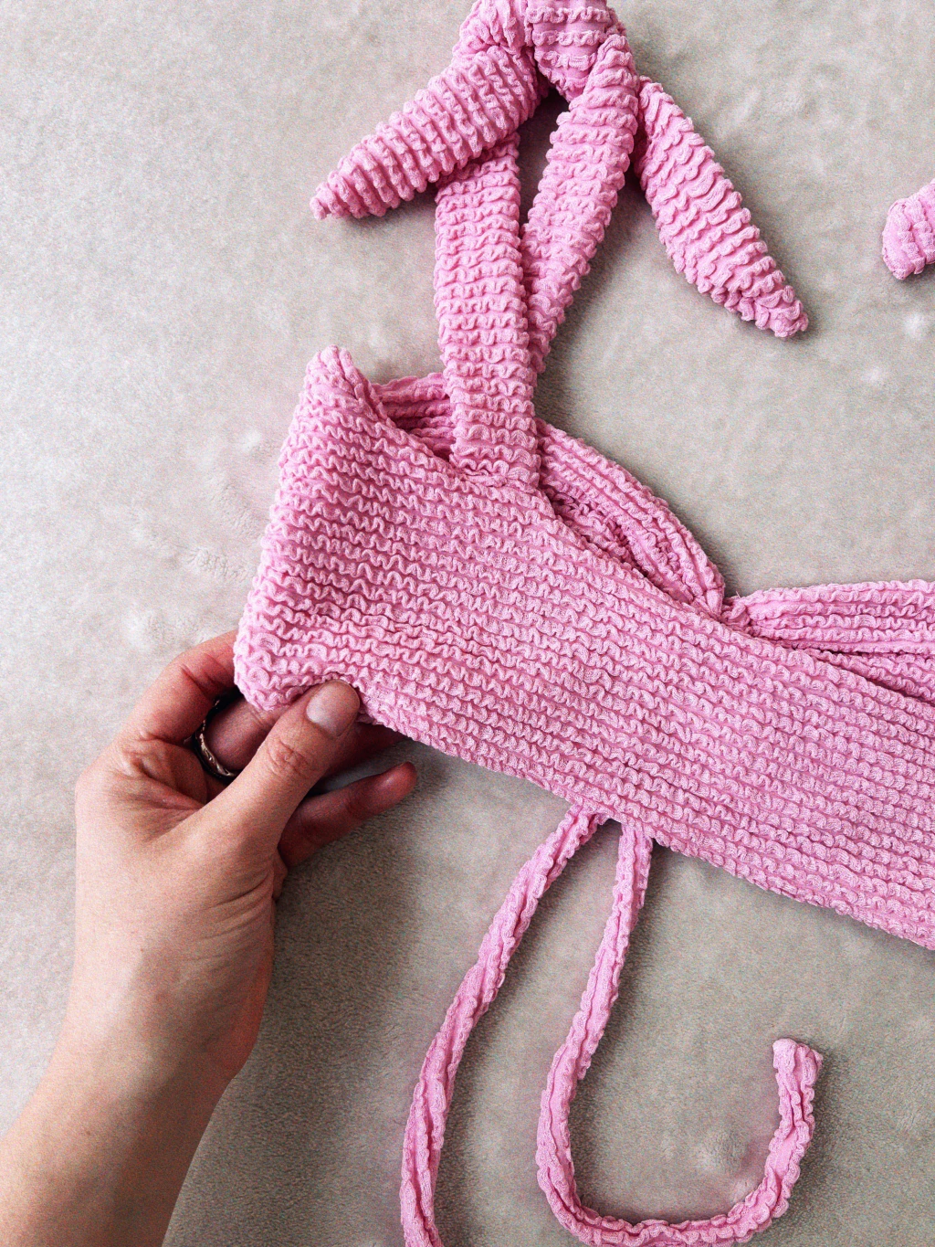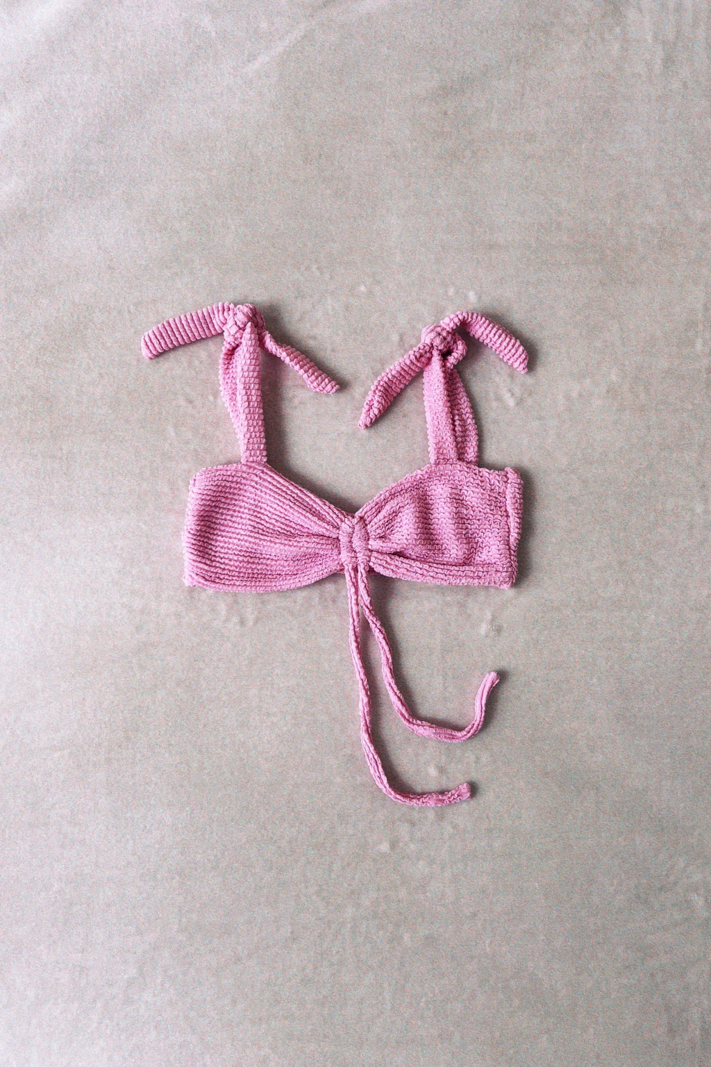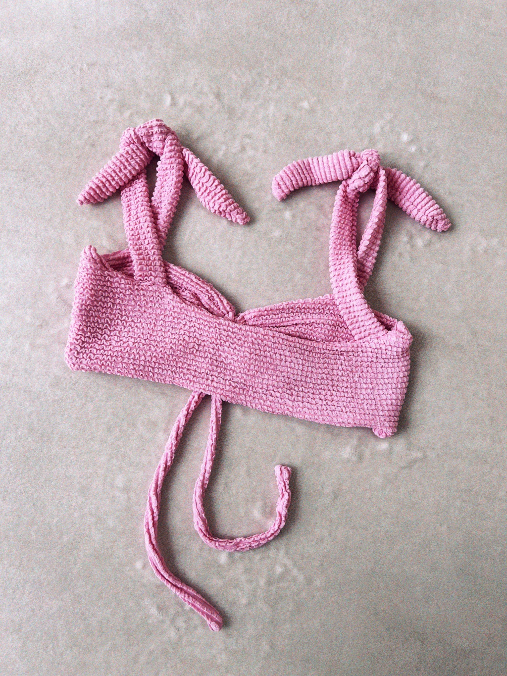 La prenda fué confeccionada en Mar del Plata. Es un top con breteles anchos (el ancho del brete también progresiona en los talles mas grandes), está forrado con la misma tela del frente, lo que hace que tenga mucho soporte. Es un modelo que sostiene muy bien tanto en los talles chicos como en los grandes. Tiene un cordón de la misma tela en el centro que frunce el escote según prefieras usarlo.