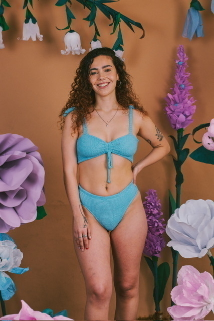 La tela es de origen brasilero y está confeccionada con fibras LYCRA® XTRALIFE™ con tecnología SOLARMAX® que bloquea los rayos UV en un 97,5%.
