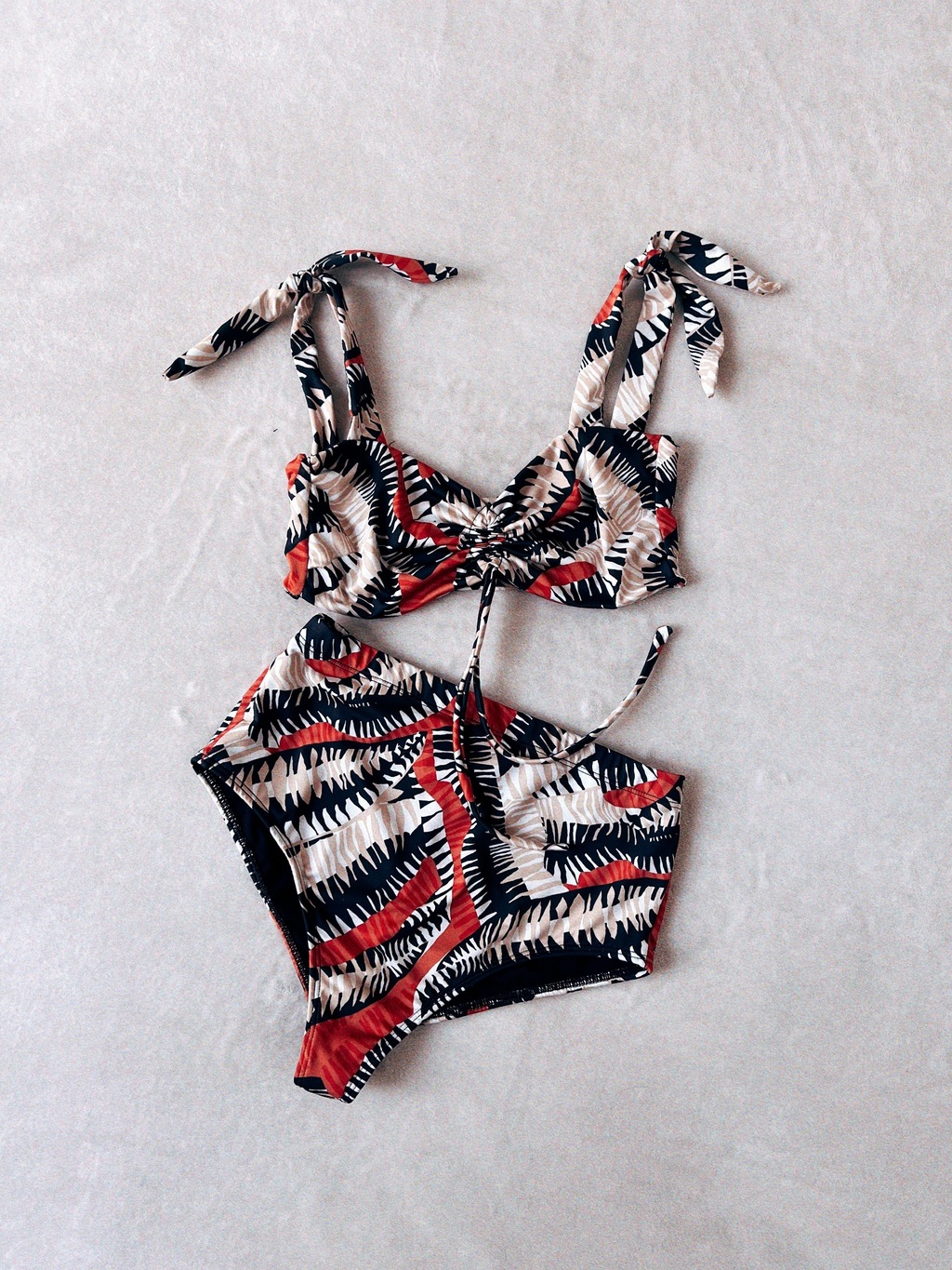 Composición: 85% poliamida 15% elastano. La tela es de origen brasilero y está confeccionada con fibras LYCRA® XTRALIFE™ con tecnología SOLARMAX® que bloquea los rayos UV en un 97,5%.