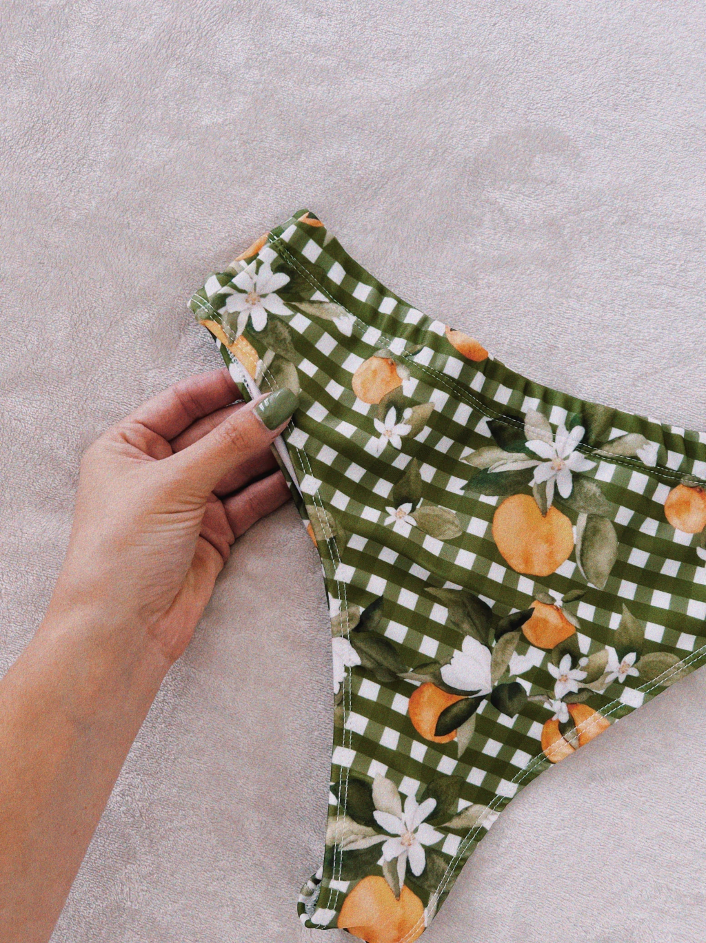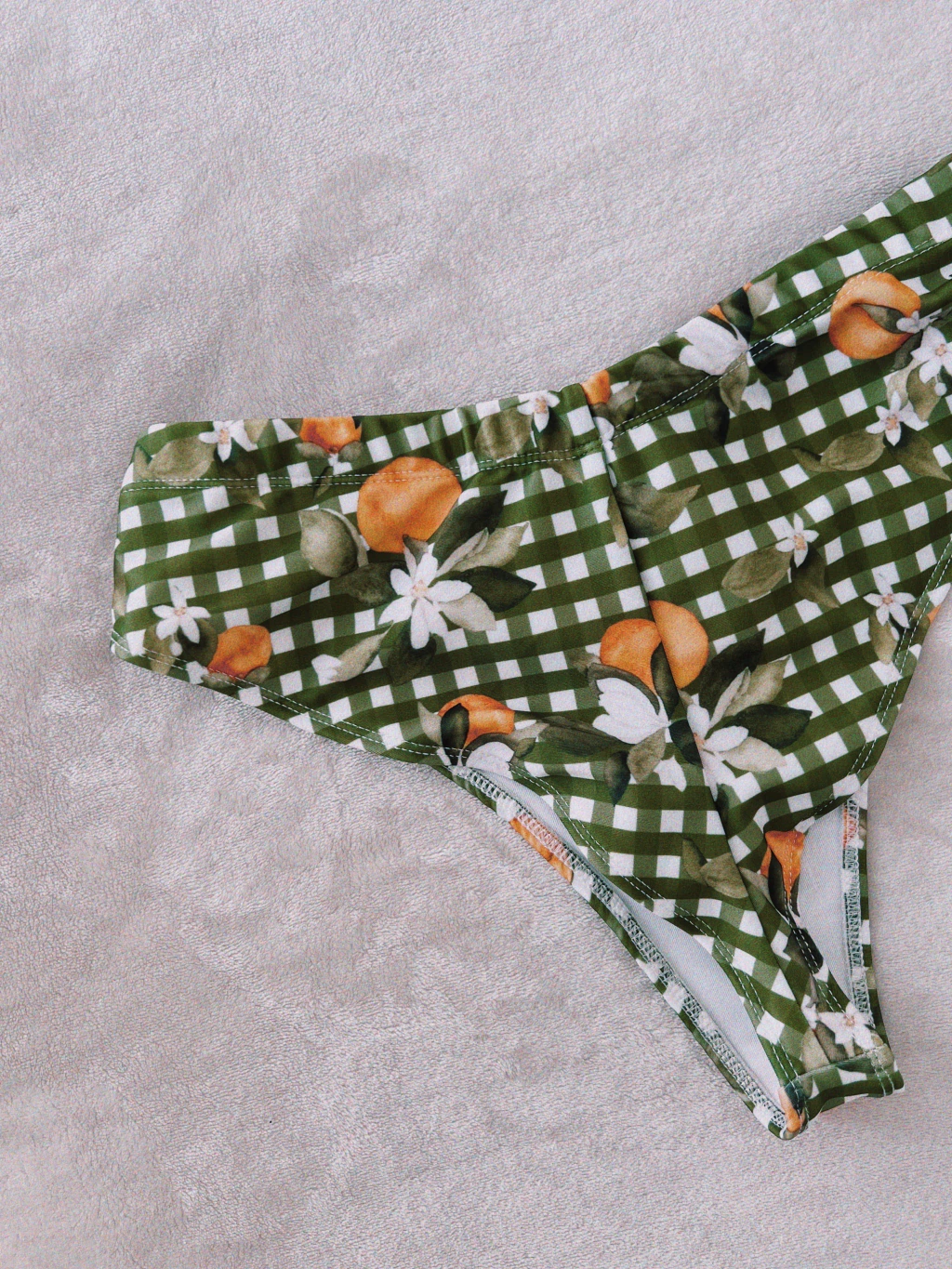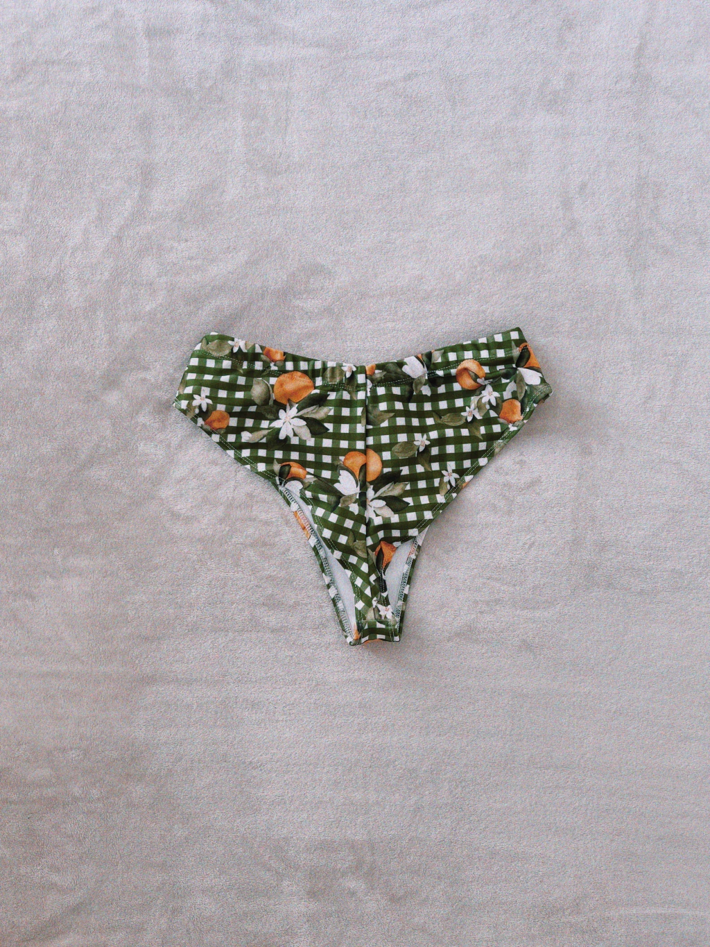La prenda fué confeccionada en Mar del Plata. El corte es tipo vedetina tiro alto, el molde está diseñado para seguir la forma del cuerpo en el calce trasero. El elástico de la cintura es ancho, de 2,5 cms.