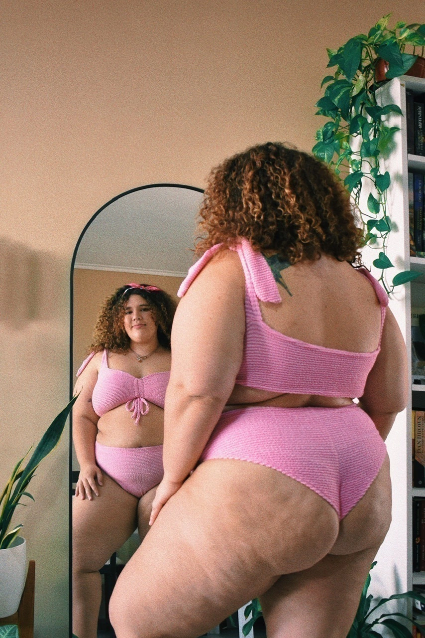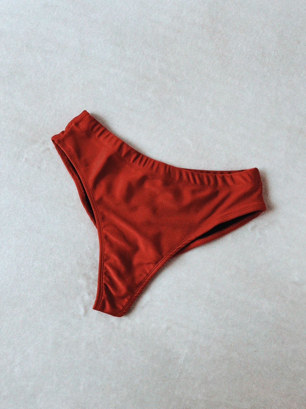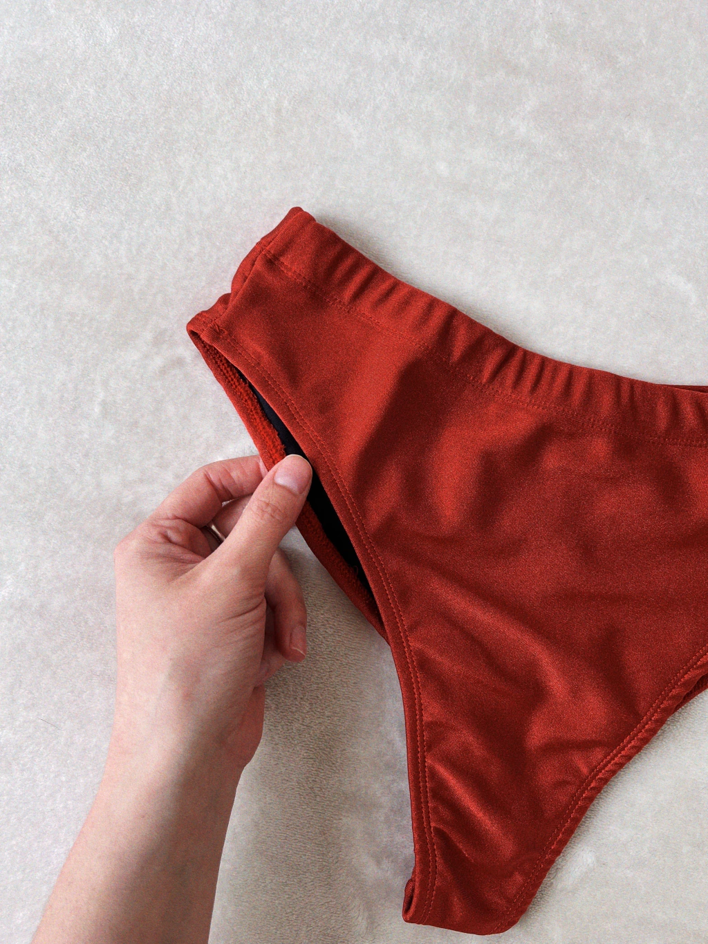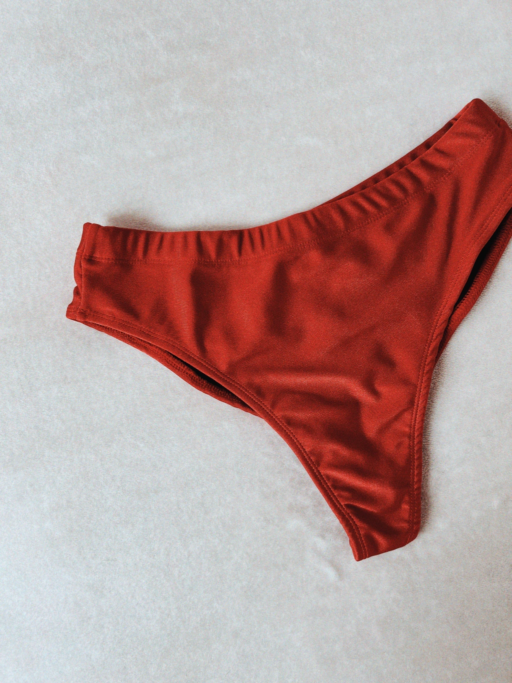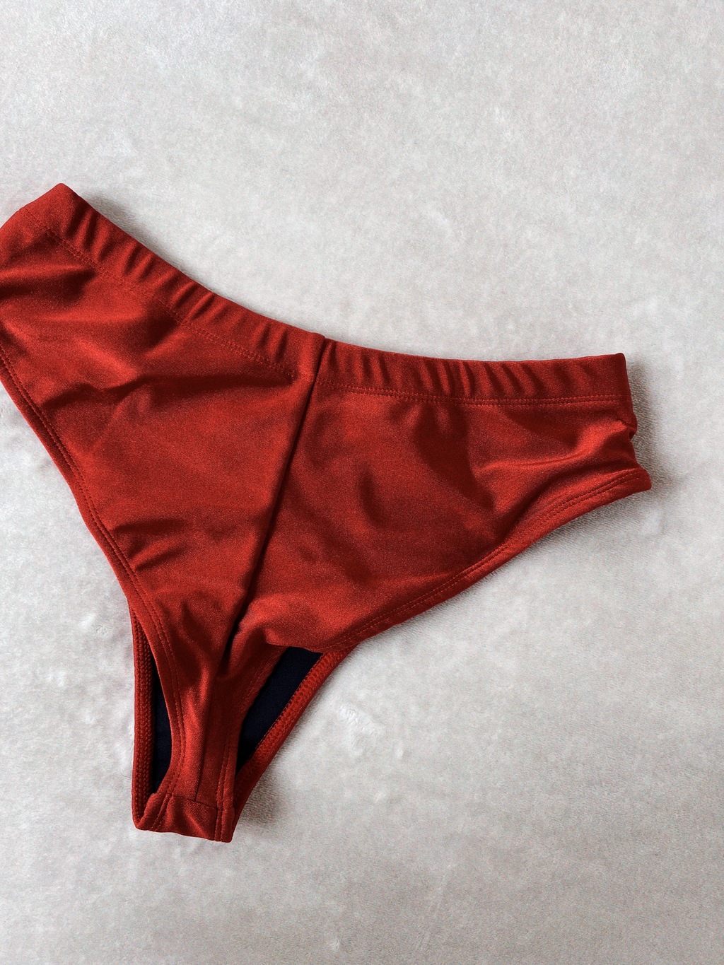 La prenda fué confeccionada en Mar del Plata. El corte es tipo vedetina tiro alto, el molde está diseñado para seguir la forma del cuerpo en el calce trasero. El elástico de la cintura es ancho, de 2,5 cms.