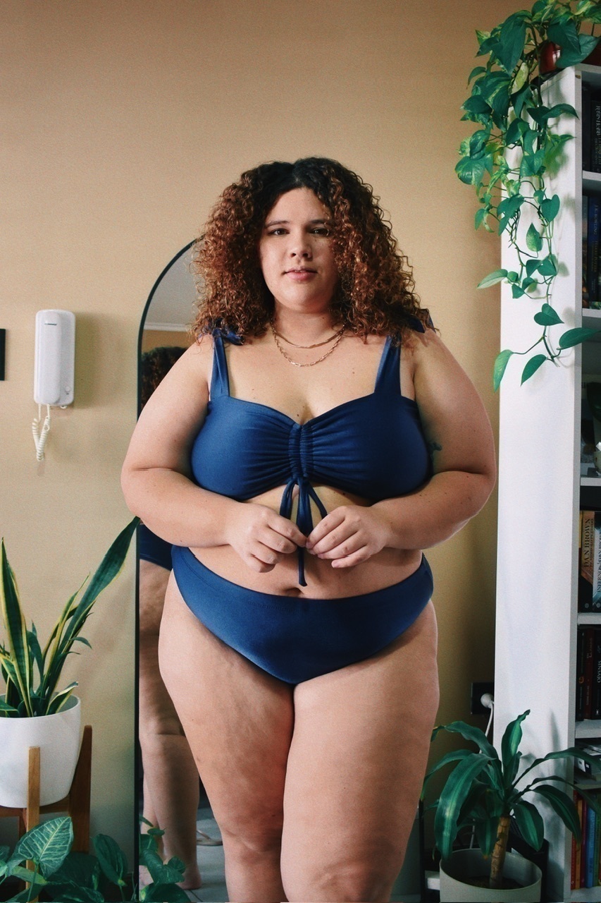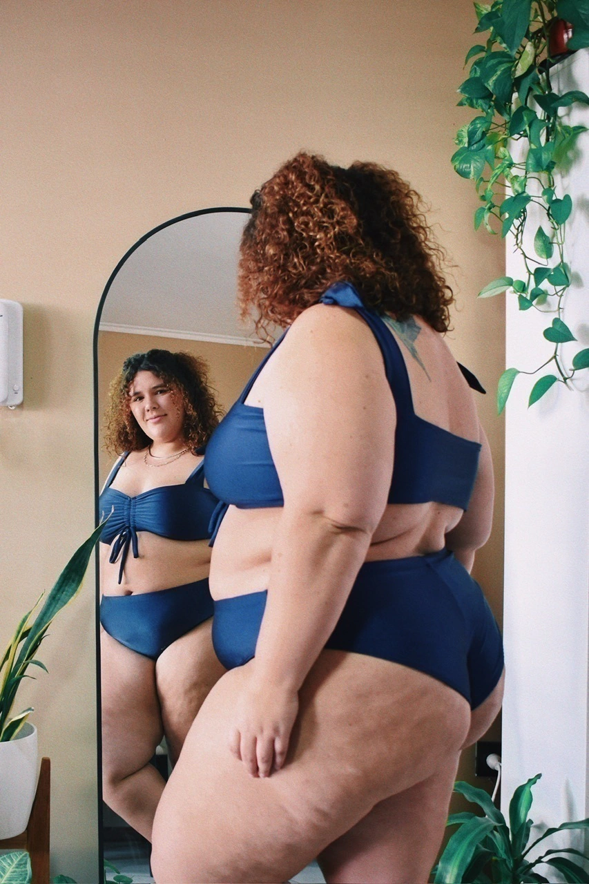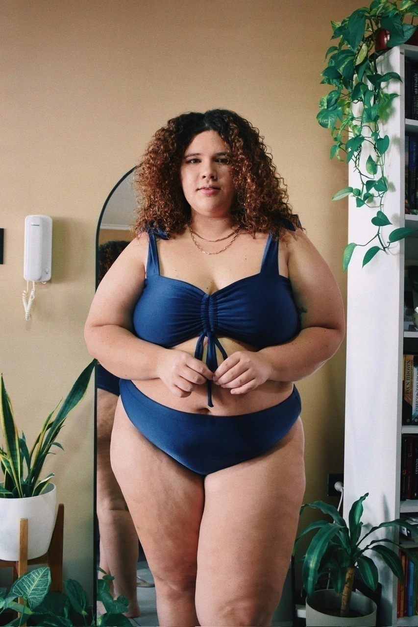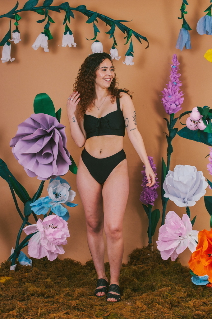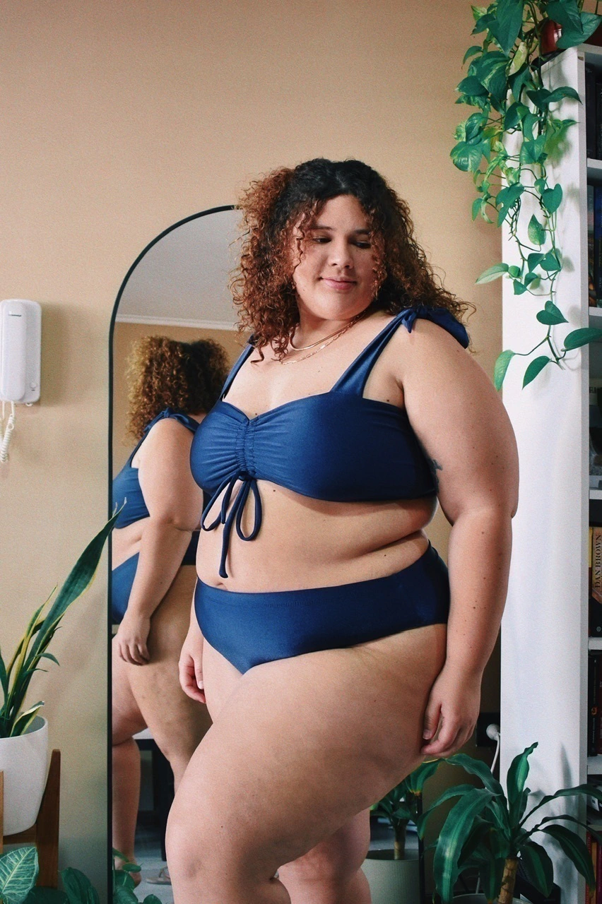 Composición: 85% poliamida 15% elastano. La tela es de origen brasilero y está confeccionada con fibras LYCRA® XTRALIFE™ con tecnología SOLARMAX® que bloquea los rayos UV en un 97,5%.