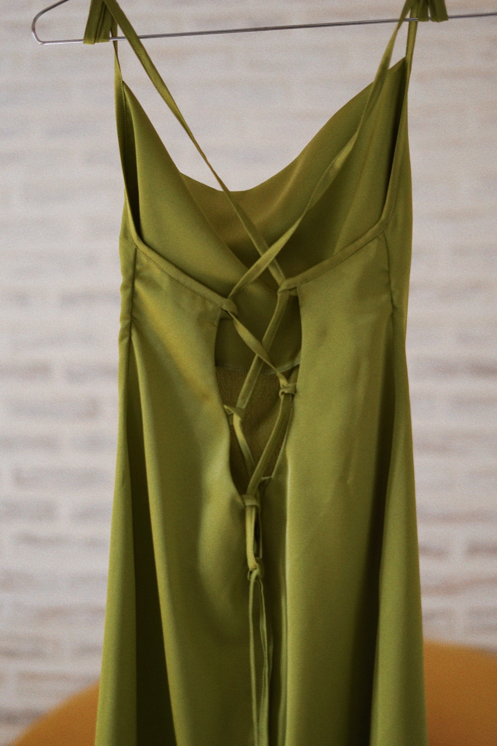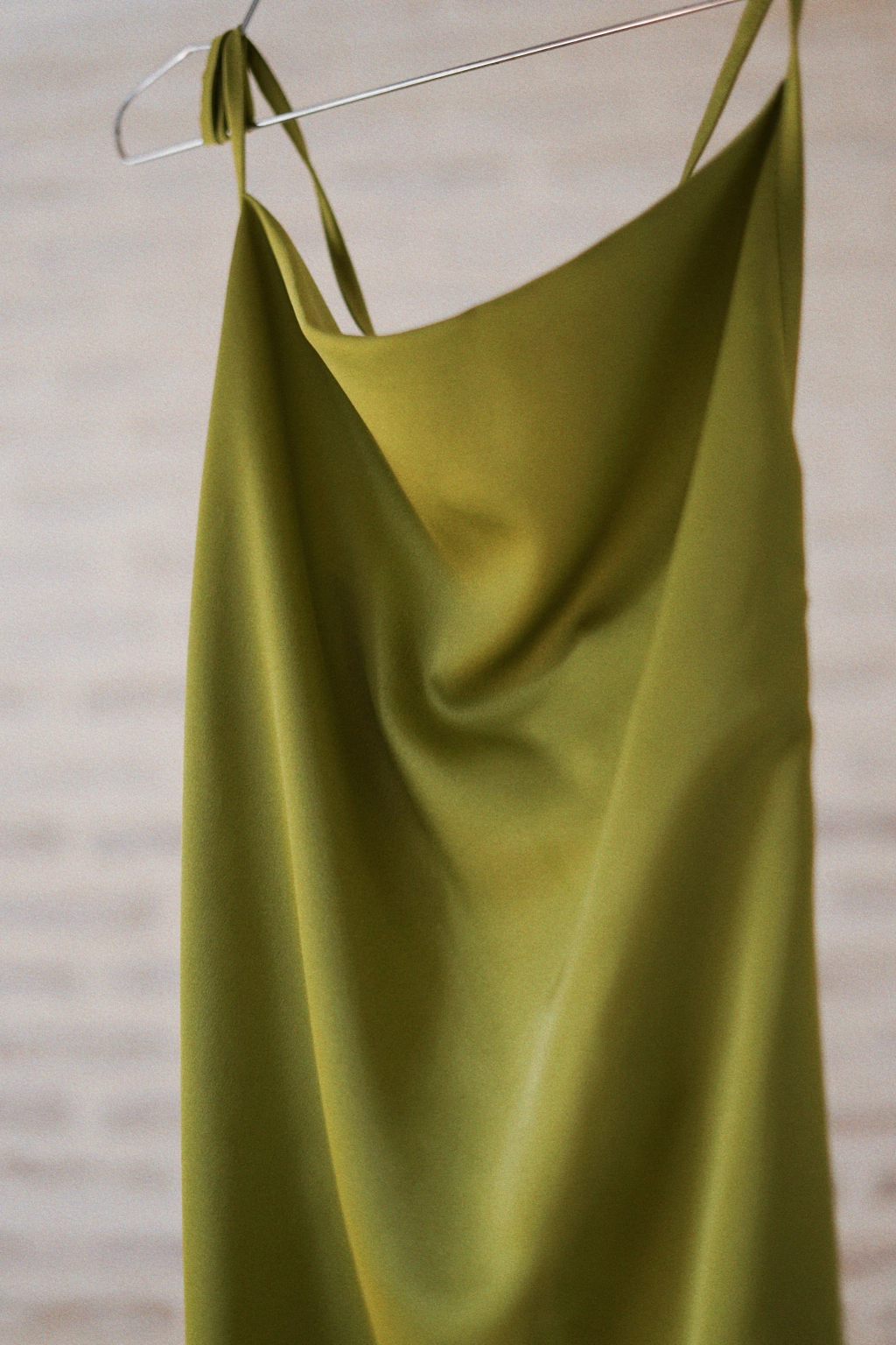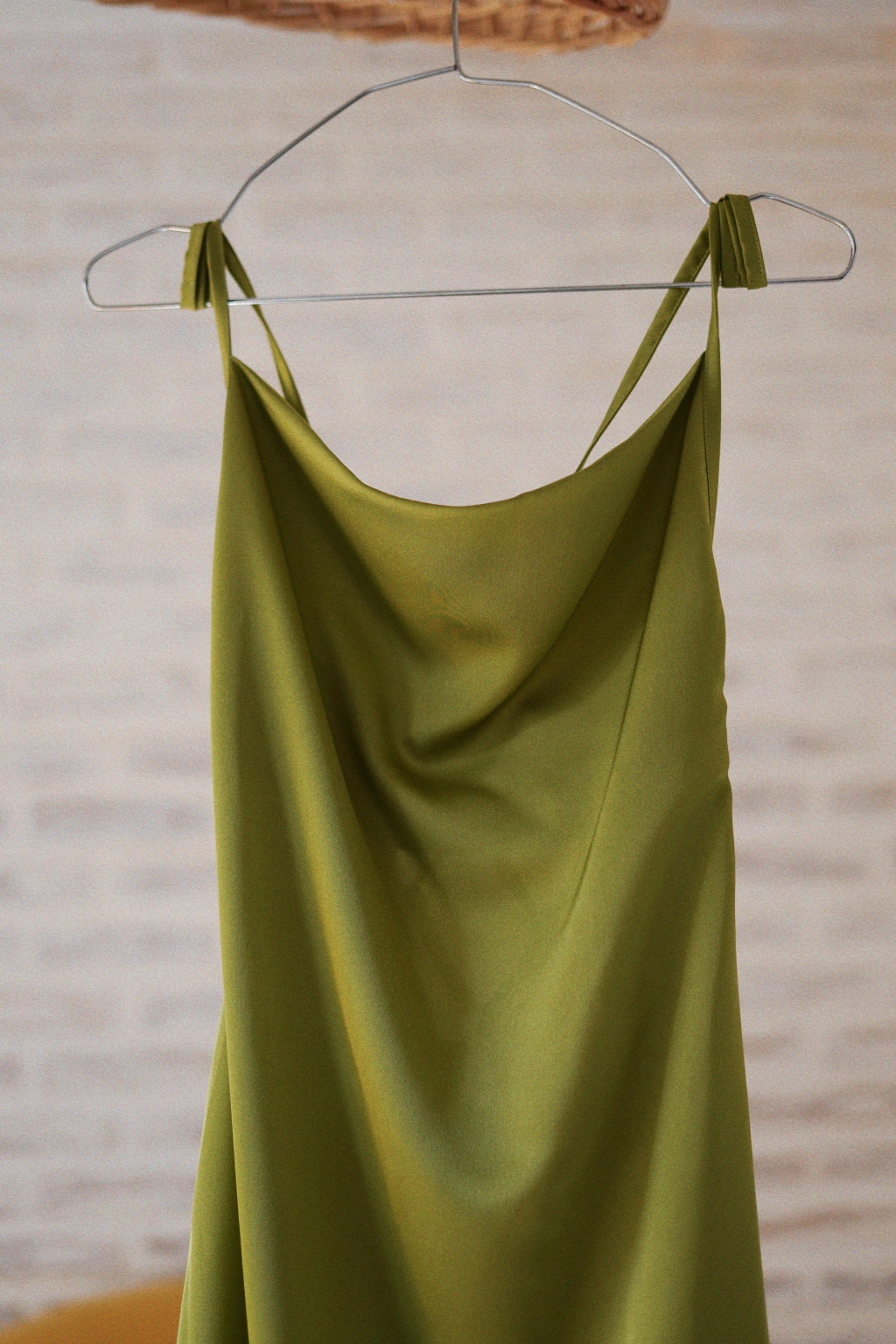 Este vestido pertenece a nuestra línea "hecho a mano" la cual está cortada pieza por pieza a mano para asegurarse que las prendas tengan una correcta caída, y luego confeccionado por la talentosa Belen, que tiene su taller en mar del plata.