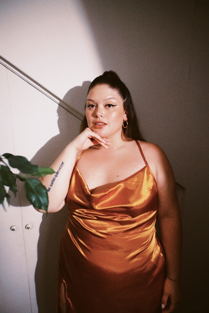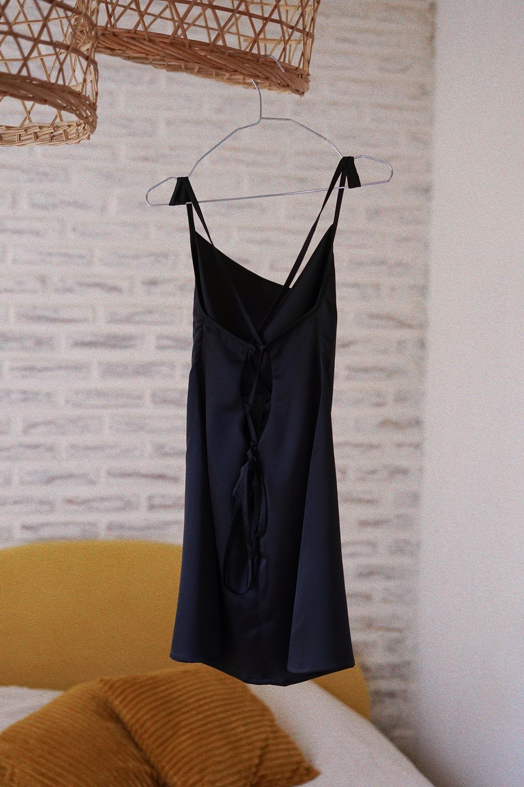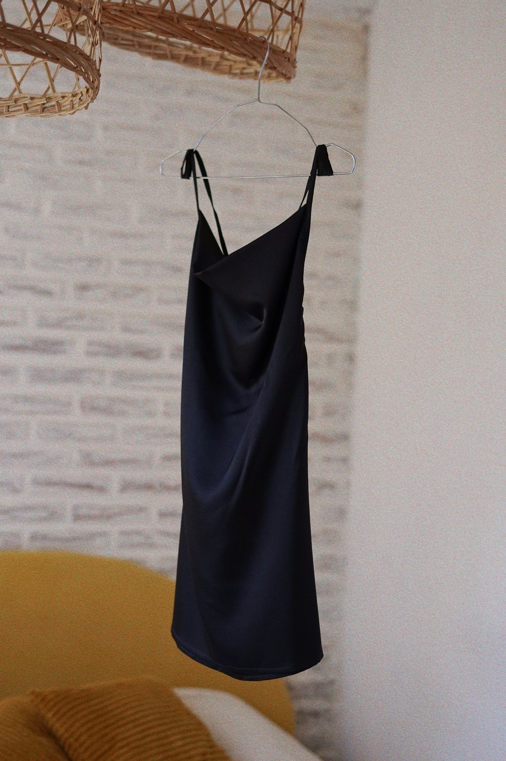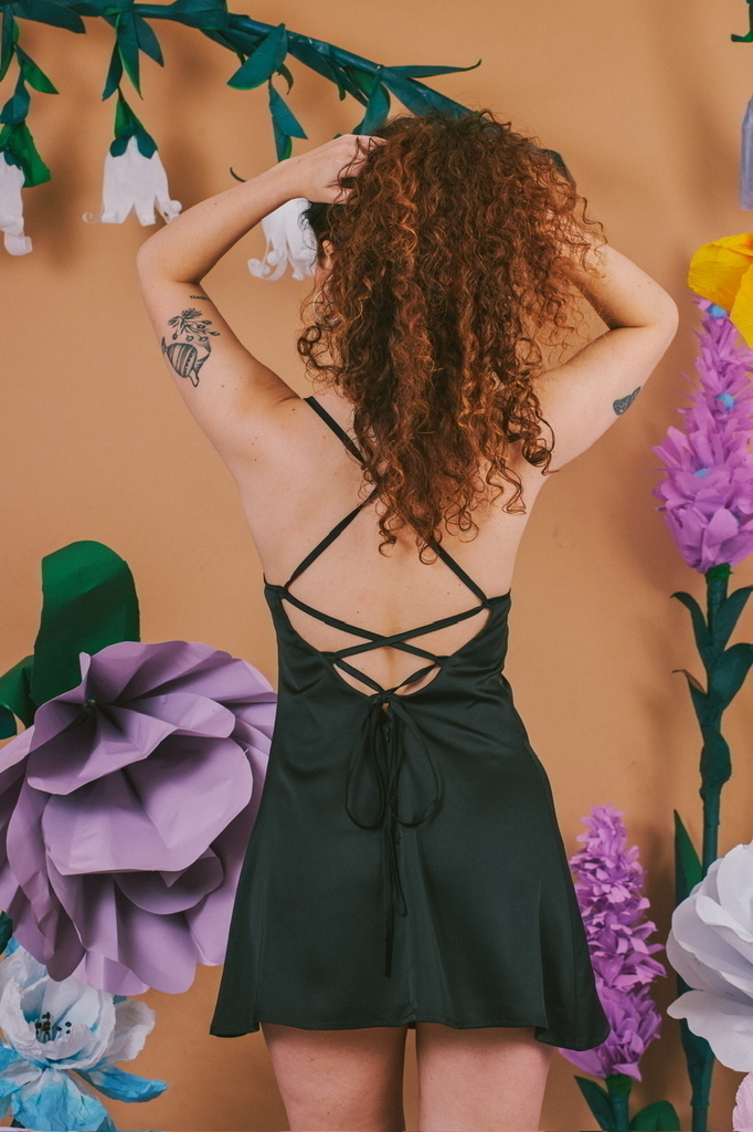 Vestido de satén con buche, y tiras en la espalda. Viene en 5 talles y cada talle tiene un corte espectacular (hicimos muchas muestras para lograrlo asi que pienso comunicarlo siempre que pueda).